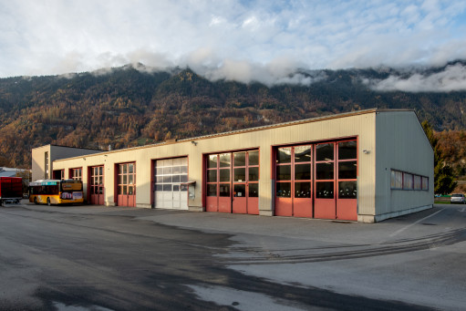 STI-Hauptsitz mit Direktion, Werkstatt, Einstellhallen, Waschanlage, Schwäbis Thun