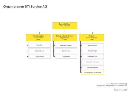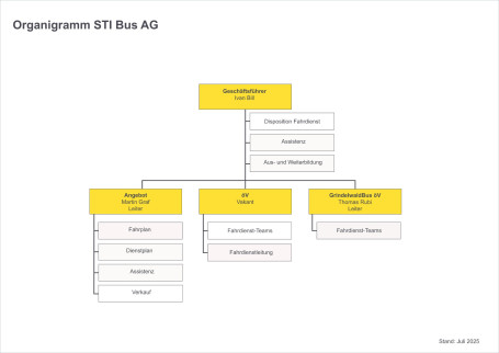 Die STI Gruppe besteht aus der Muttergesellschaft STI Holding AG und den Tochtergesellschaften STI Bus AG, STI Service AG und STI Liegenschaften AG.